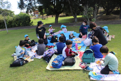 1週間延期となりましたが、秋晴の下、自然豊かな鬼岳園地芝生広場で開催することができました。子どもたちは、競技をしたりダンスを踊ったり笑顔で楽しんでいました。また、保護者の方や祖父母の方とふれあいを楽しみ、終始笑顔の子どもたちでした。