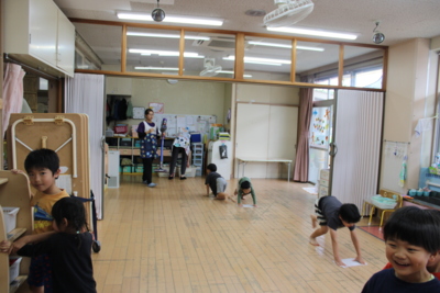 今日は、みじょカラ先生による運動遊びでした。みんな、みじょカラ先生との運動遊びは大好きで、終始笑顔で楽しんでいました!(^^)!