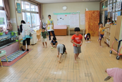 体を動かして遊び、子どもたちは楽しそうでした!(^^)!