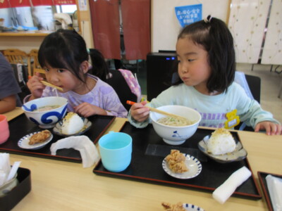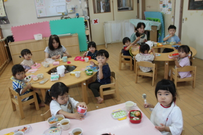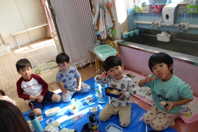 今日は、お弁当日でした。ご家庭からのお弁当は子どもたちにとって 「特別」です。朝から「ワクワク」している様子でした!(^^)! お弁当の時間になると、子どもたちは夢中で頂いていました!(^^)!