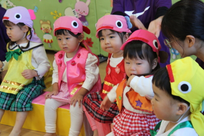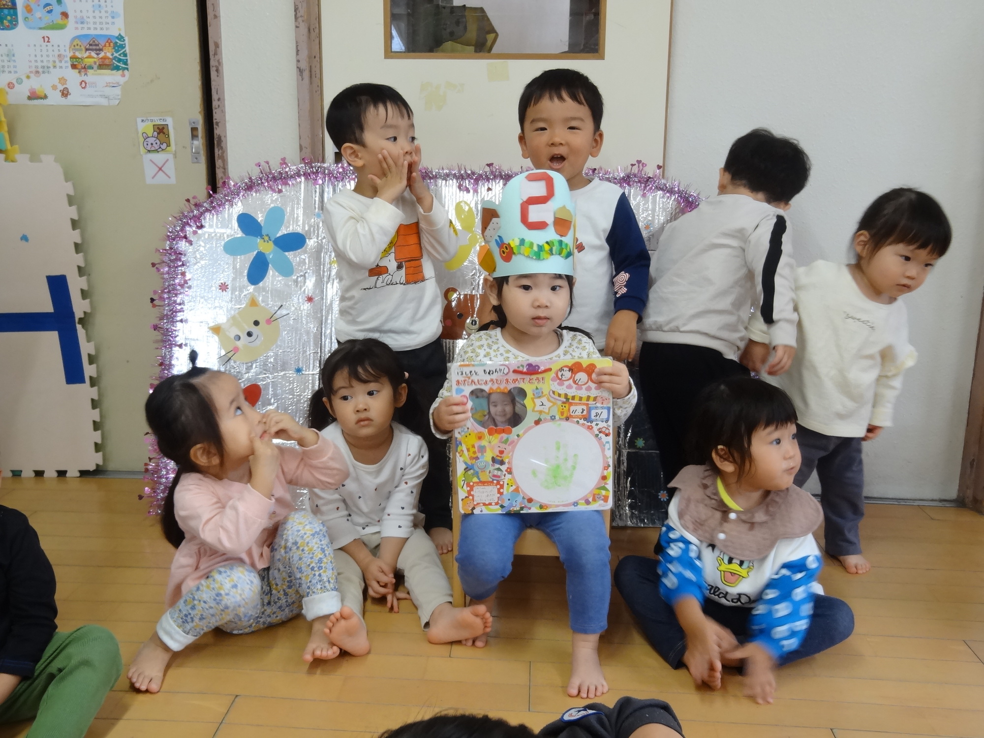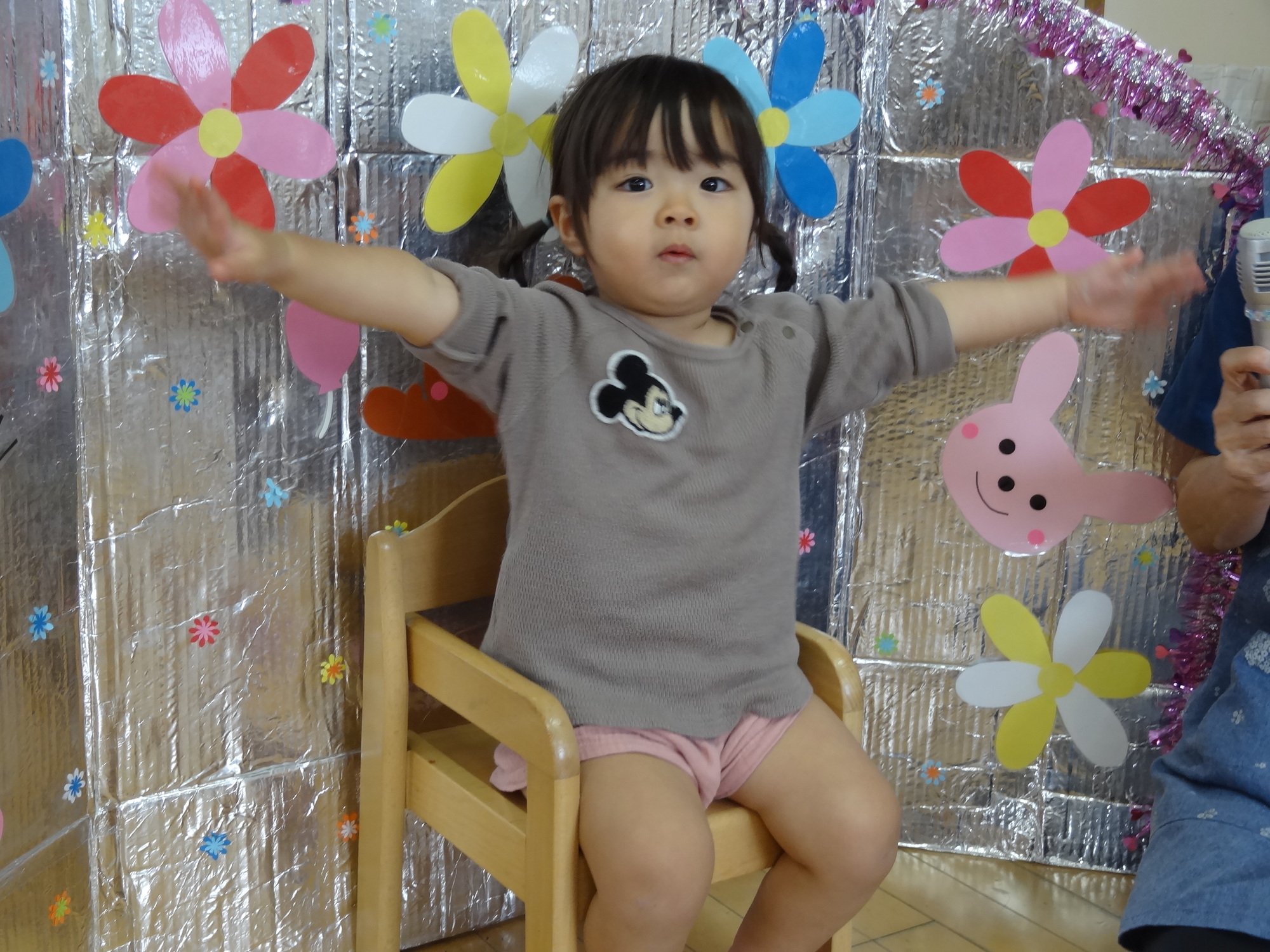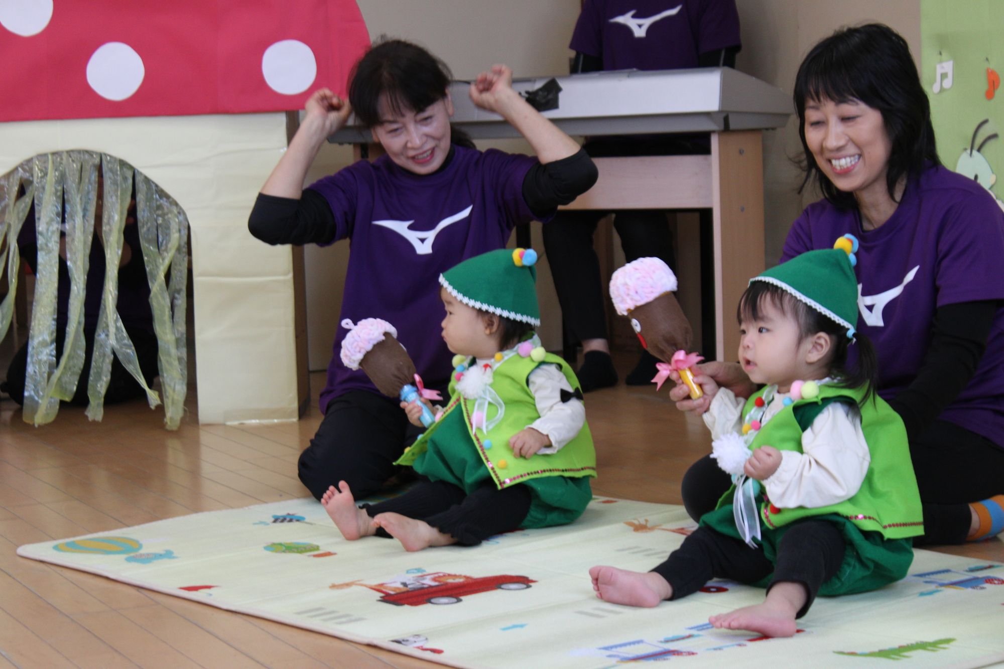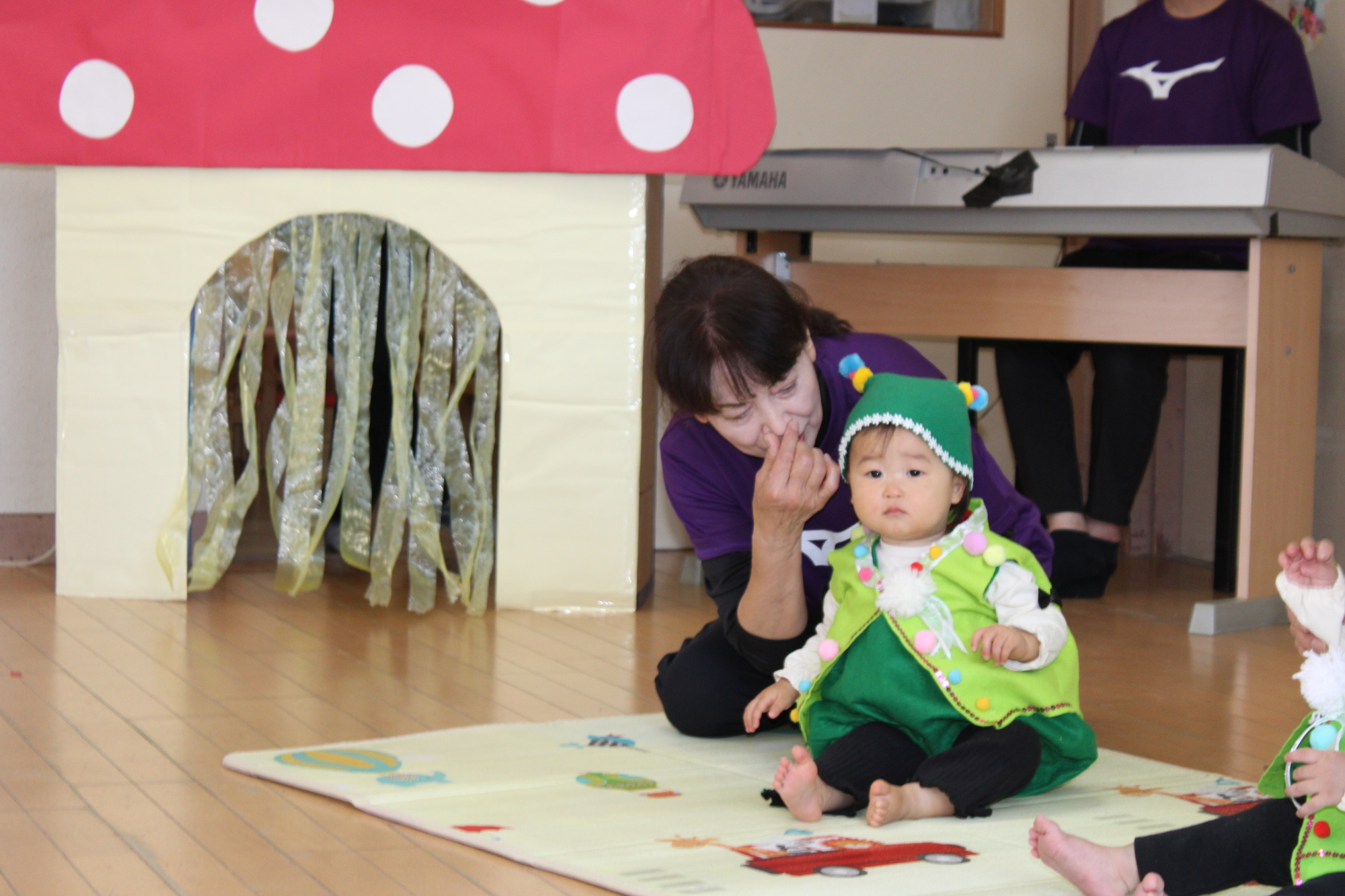 今日は、すくすくチームのお楽しみ会でした。お天気もよく、子どもたちのお楽しみ会をあたたかく包んでくれるようでした。0~2歳児の子どもたちが、お返事をしたり、音楽に合わせてリズム遊びをしたり、いろんな遊びの姿を見ていただきました。その姿には、それぞれの子どもたちの成長を感じ取っていただけたと思います。これからも子どもたちが、心も体もすくすくのびのび成長できるように援助していきたいと思います。ご参観いただきありがとうございました。