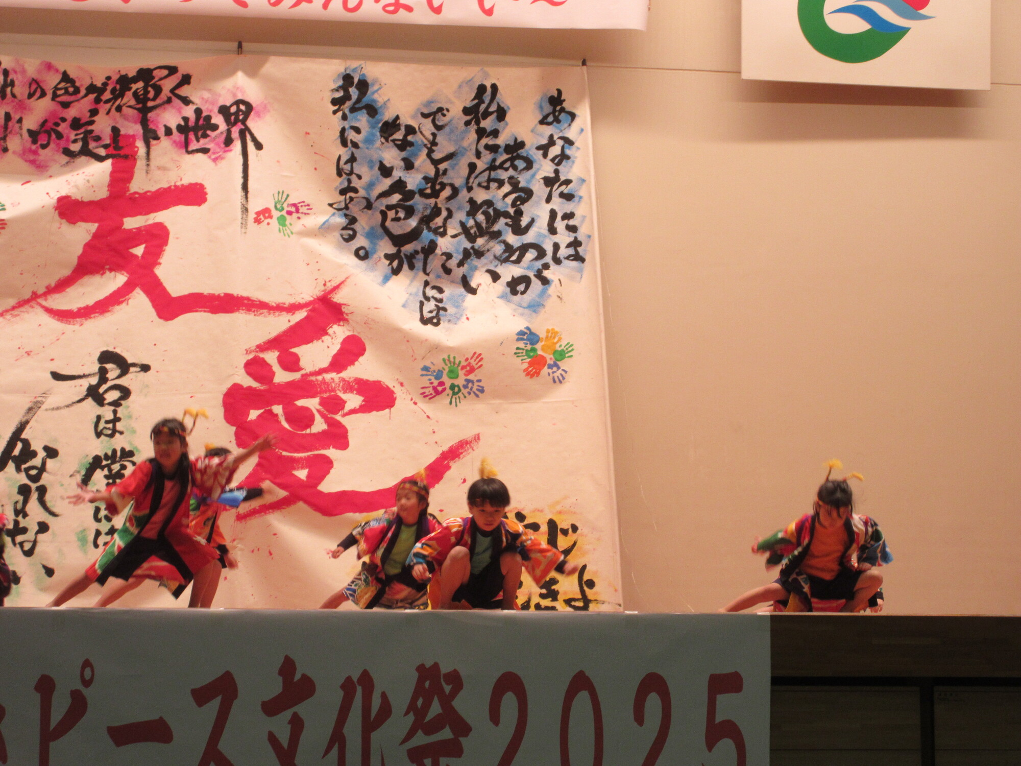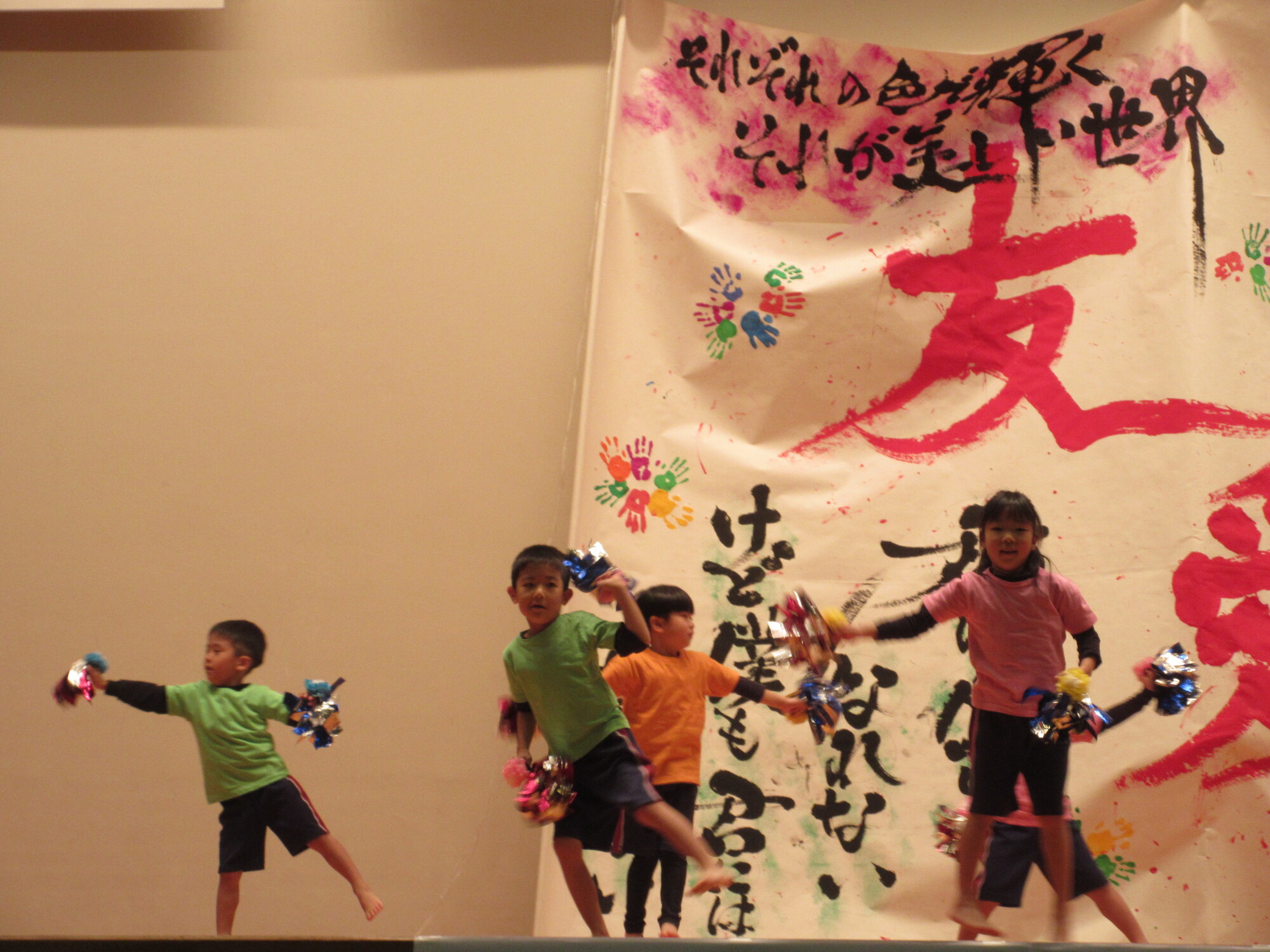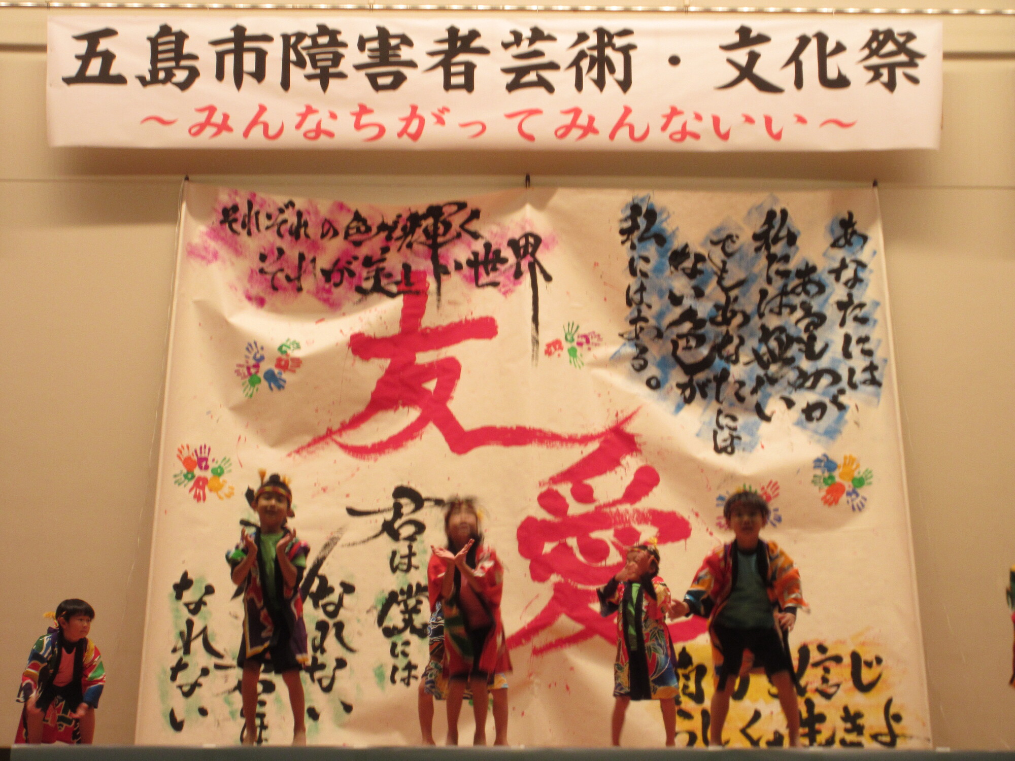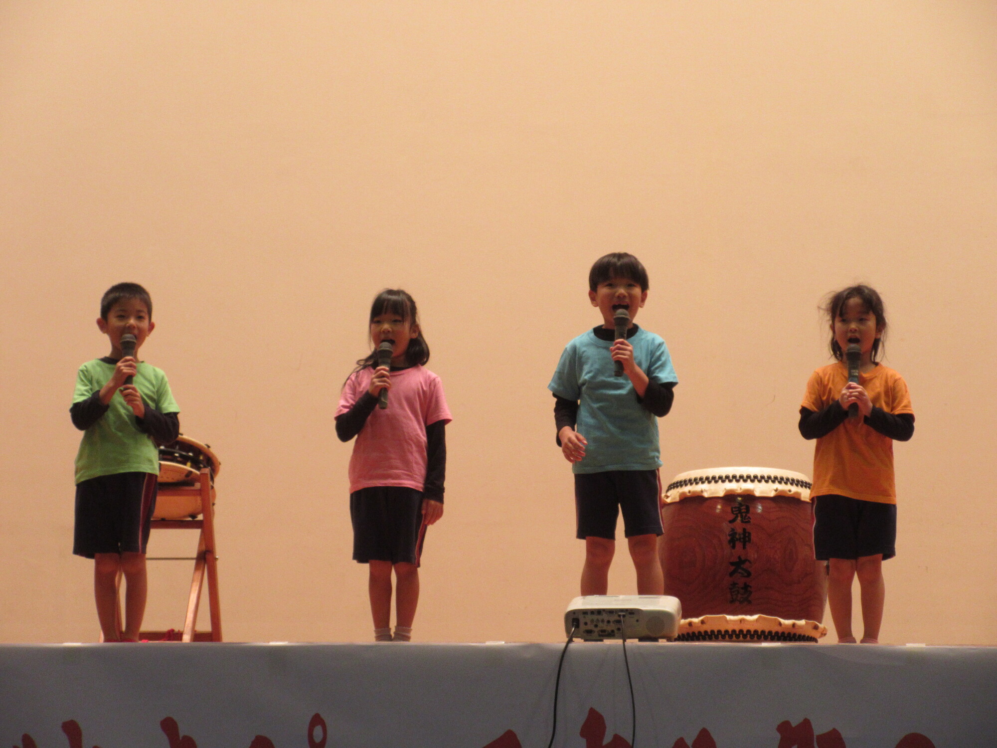 五島市障がい者芸術・文化祭2025に⒋・5歳児10名の園児が参加しました。最初に、開会宣言を4名が元気に行うことができました。 その後に、「南中ソーラン」と「マスカット」を踊り、「ありがとうの花」を手話を交えながら歌いました。子どもたちは、元気に笑顔で参加し会を盛り上げることができました。